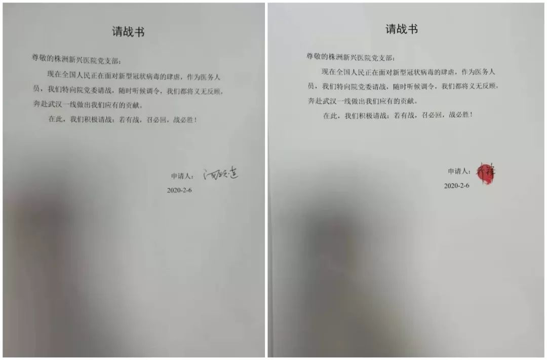 “国有战,召必回,战必胜,作为医务人员,我们特向党委请战,随时听候调令,我们都将义无反顾,奔赴武汉一线做出我们应有的贡献”。
