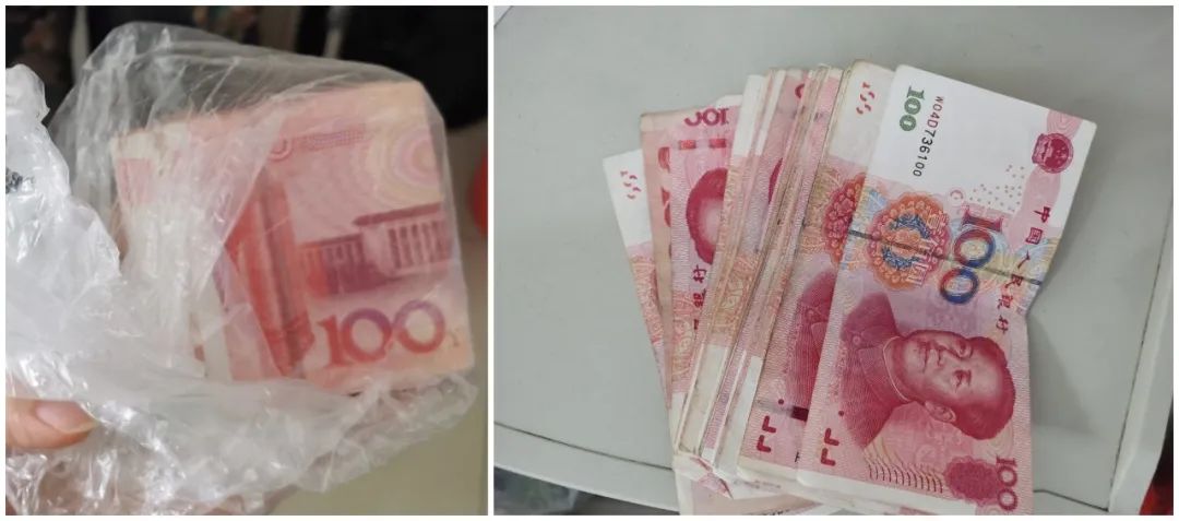 谭雪文师傅是负责9楼病房的卫生保洁,接到科室医护人员的电话时,谭师傅正在食堂吃早餐,听清缘由后,谭师傅立即赶至医院一楼的垃圾箱内寻找,经过半个多小时一个一个垃圾袋翻找,一个透明塑料袋出现在他眼前。打开一看,里面果然装着一叠百元大钞。