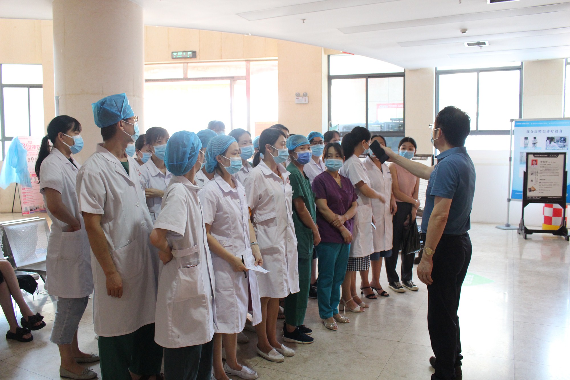 防控疫情是一场严峻的斗争,在这场没有硝烟的战场上,新兴医院的医护人员们顶着高温,克服困难,奋战在抗击疫情的第一道防线上。用实际行动体现新兴人的责任与担当。
