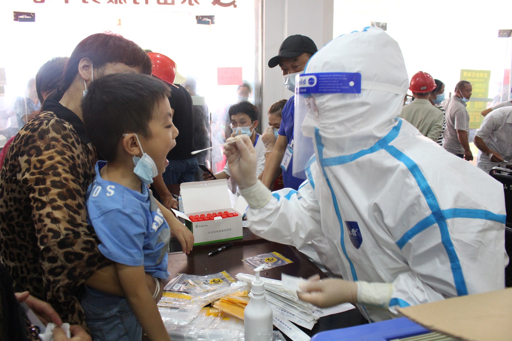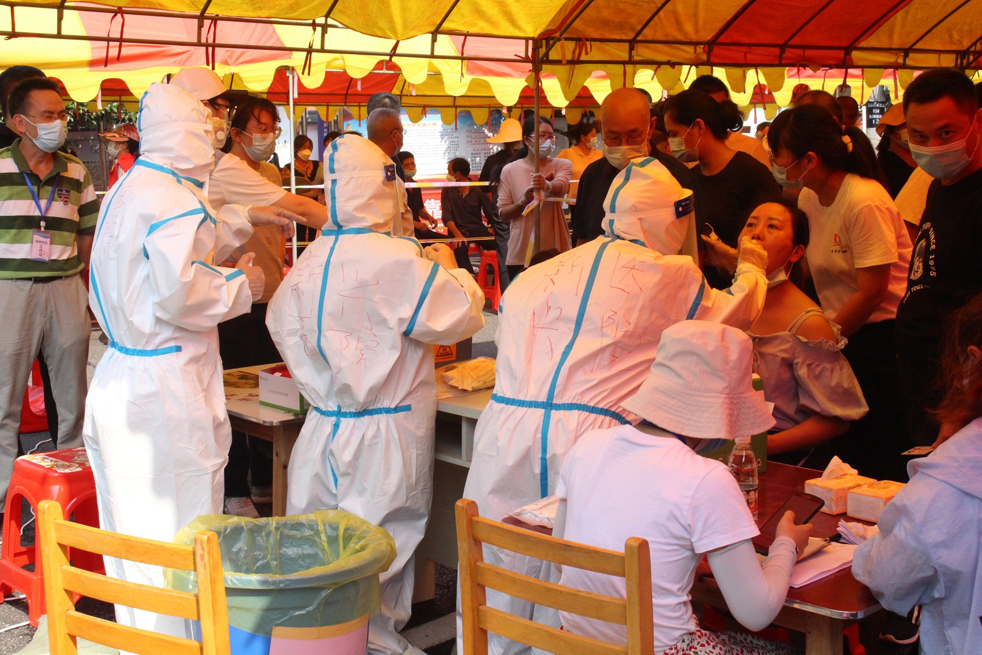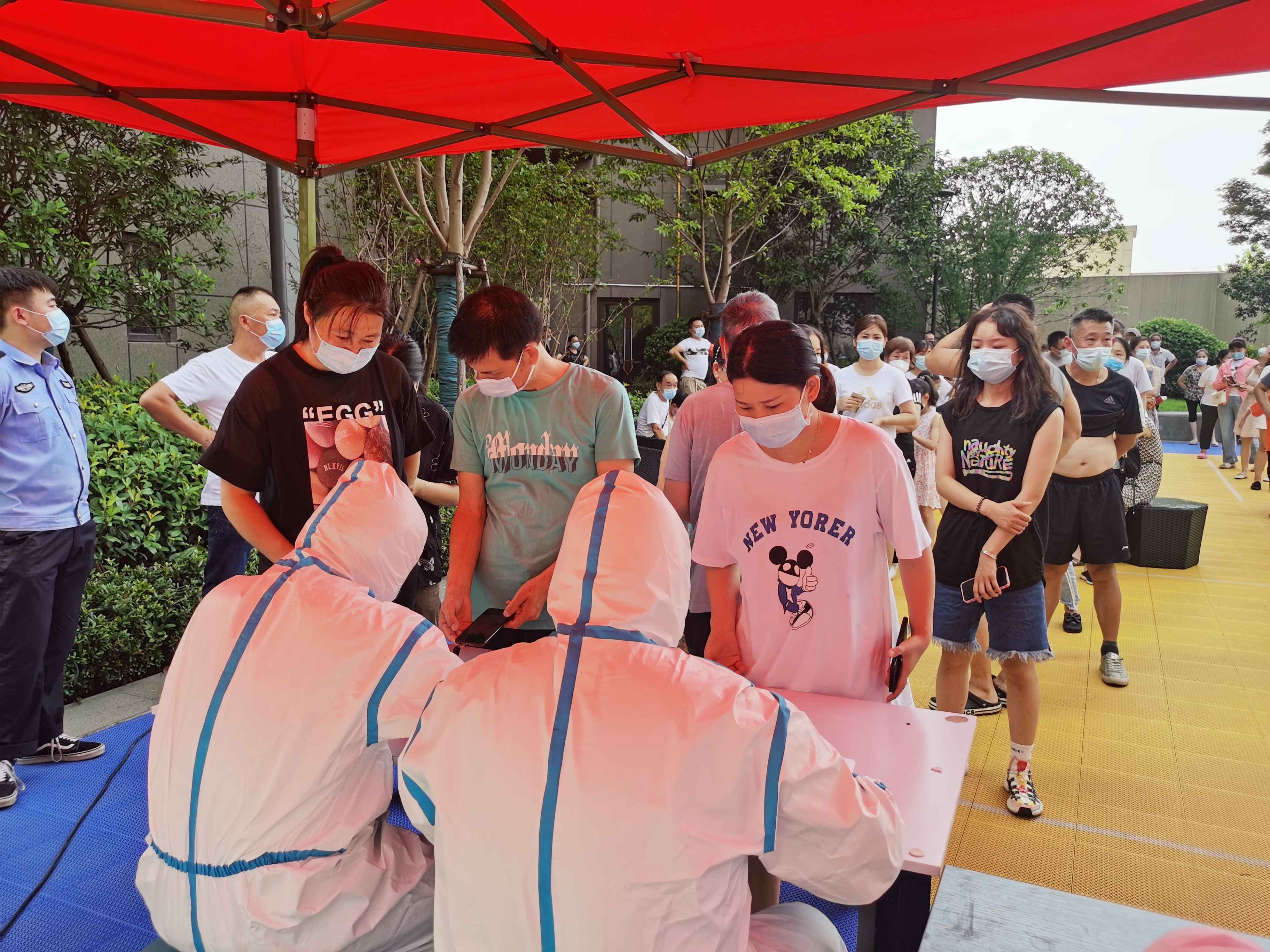 忍着超过40°C高温的炙烤,戴着闷热的N95口罩和护目镜,穿着密不透风的防护服,严谨而又细心地为一批又一批的群众进行核酸采样,冲在最前线,那是新兴医护人员最美的身影。