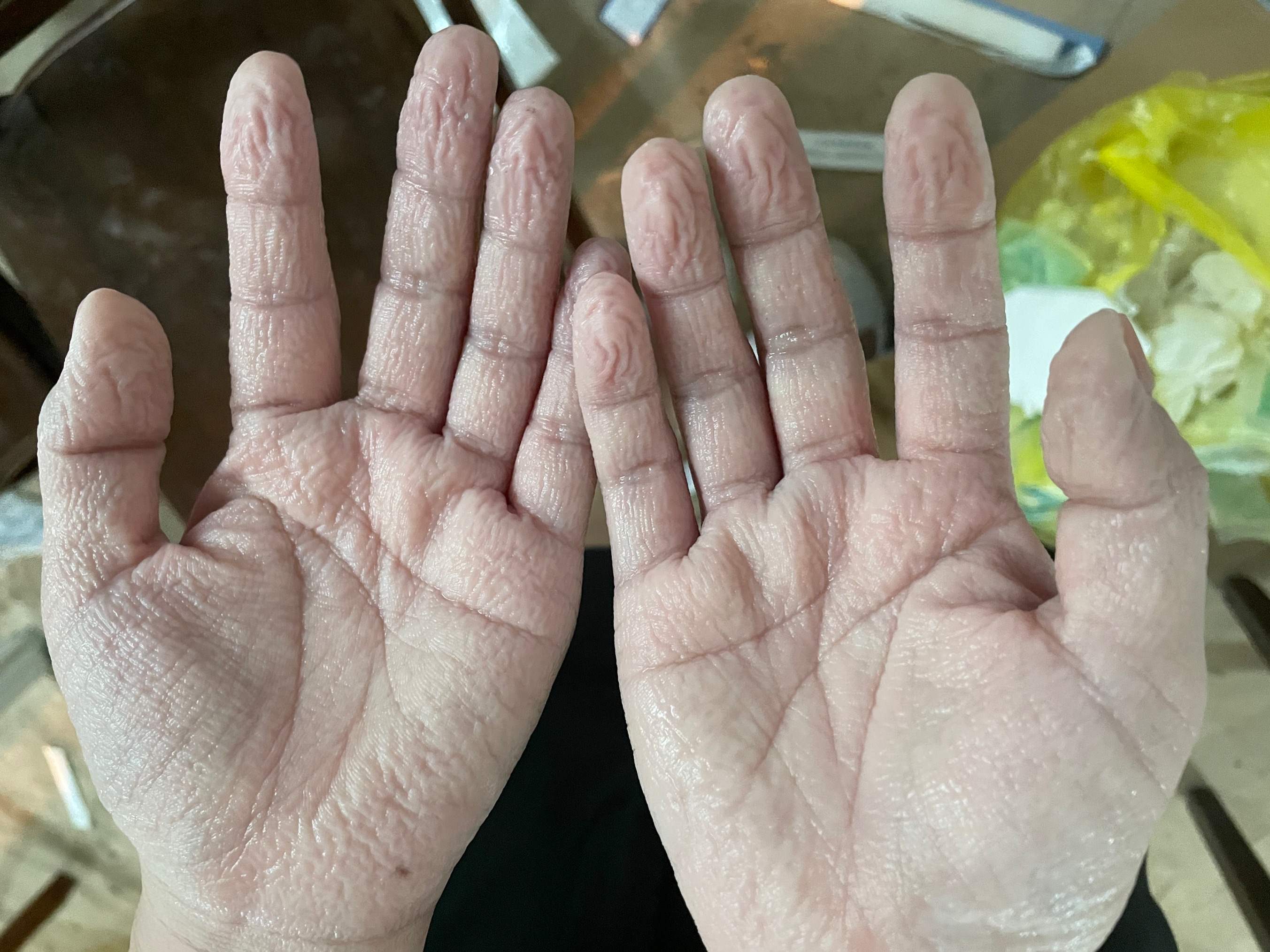 汗水泡得泛白的双手,早已被汗水浸透的衣裳,一头湿漉漉的仿若刚洗过头的头发,躺在地上疲惫的身影,却仍然能看到他们坚毅、勇敢、无畏的眼神。