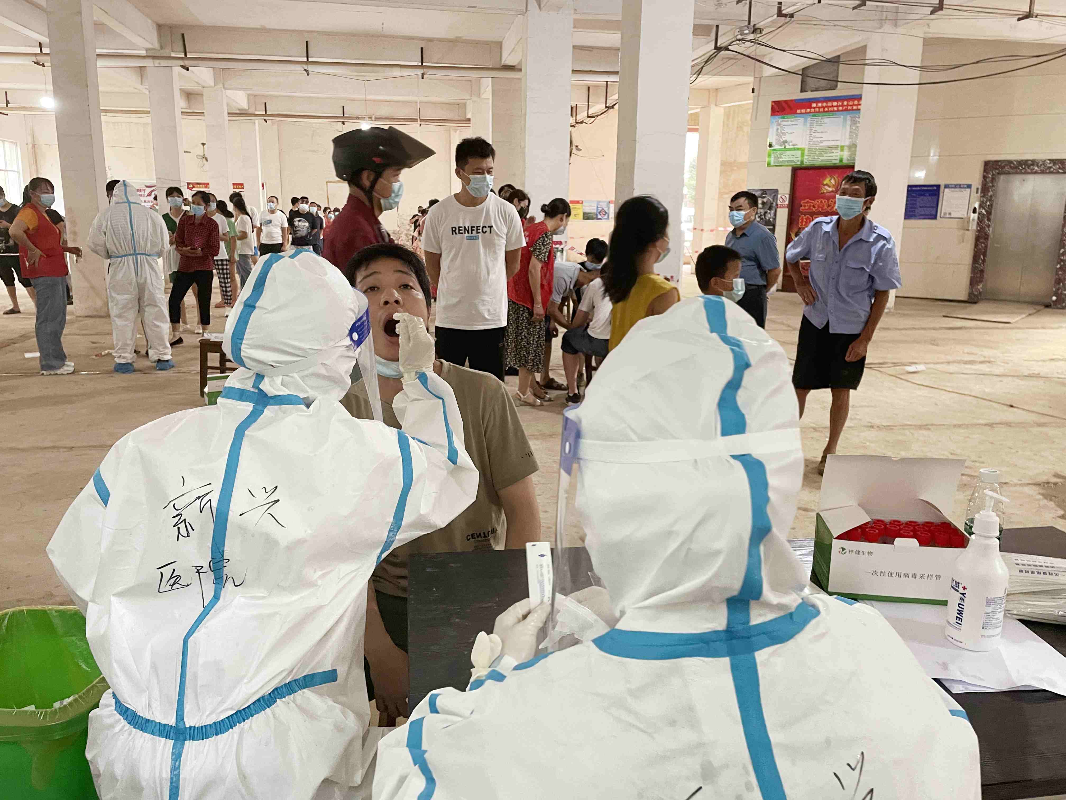 8月2号,株洲市启动全员核酸检测工作,株洲新兴医院立即组织第二梯队30名医护人员组成的支援队伍,驰援荷塘区仙庾镇开展大规模核酸检测,完成当地全镇20000余名居民的核酸采样工作。