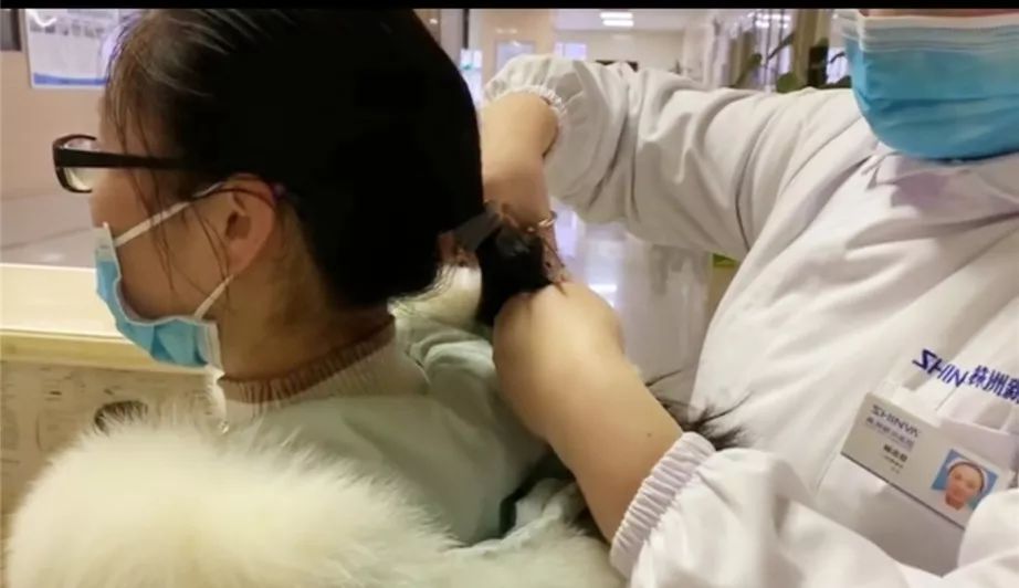 为了到前线能迅速投入战役,女孩们在临行前便逐一剪掉乌黑的长发。“充分准备,做好防疫,立即救治”这是大家共同的目标。