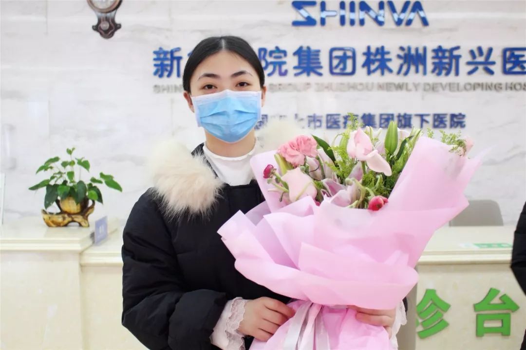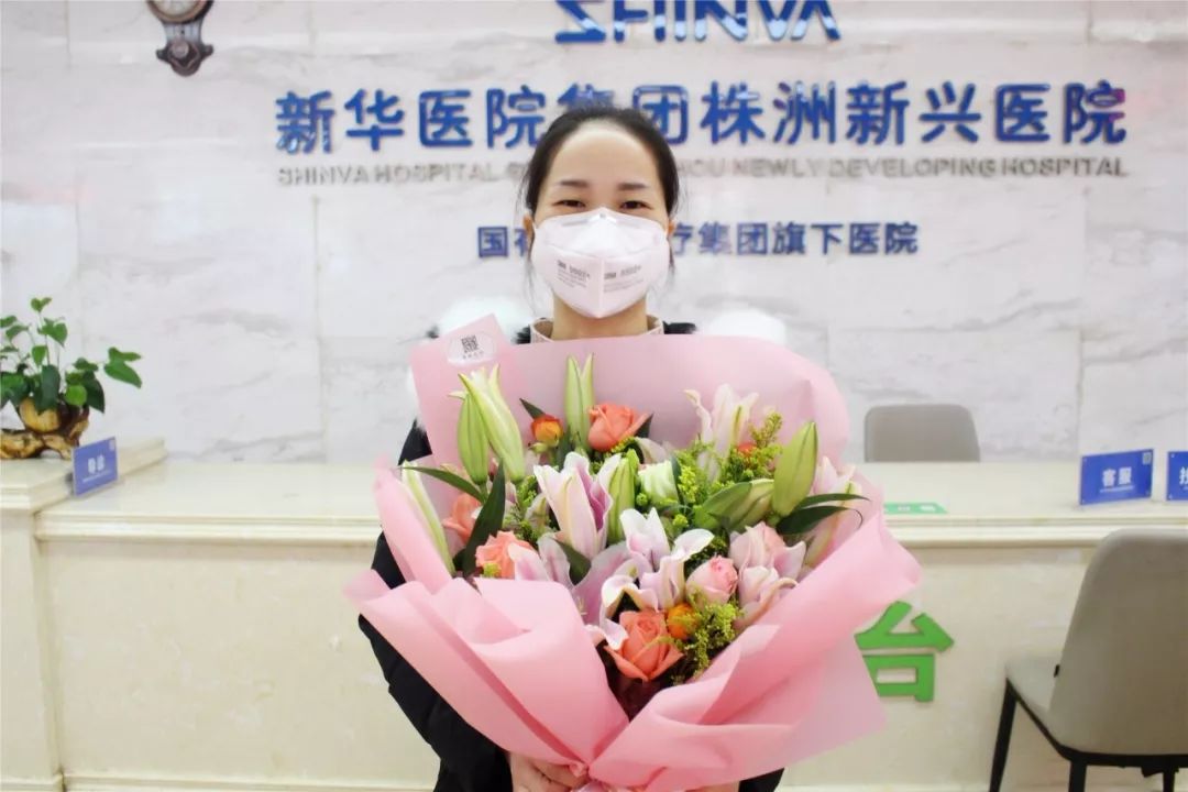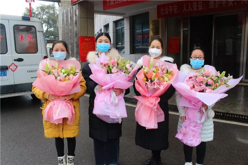 护理部主任曹群为出征队员们送上鲜花和祝福