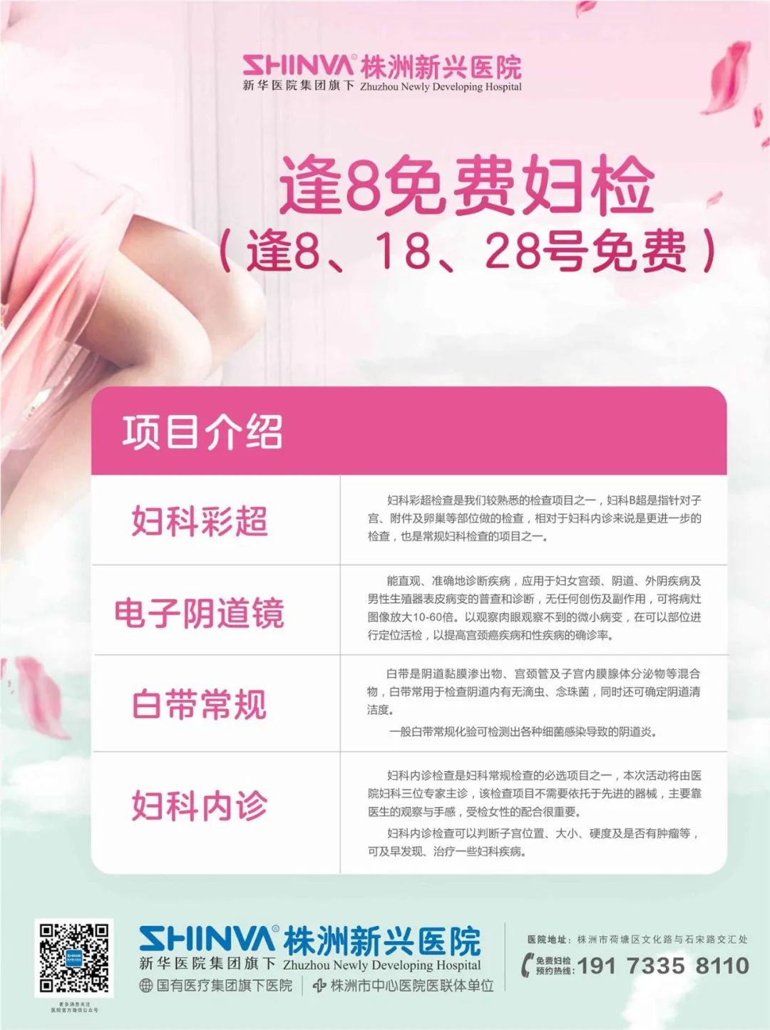 目前科室广泛开展了腹腔镜下子宫及附件切除、子宫肌瘤剥离,内膜异位症病灶清除,卵巢囊肿剥除、异位妊娠手术治疗;开展了宫腔镜下宫腔粘连分解,内膜息肉摘除、粘膜下肌瘤摘除、宫腔残留物取出、切口妊娠病灶清除;经阴道行阴式子宫切除,阴道前后壁修补、陈旧性会阴裂伤修补;经腹宫颈癌根治性手术、子宫内膜癌手术,卵巢肿瘤全面分期或减灭手术。同时有规范的不孕症诊治体系、青春期及围绝经期功能性子宫出血的治疗体系。目前新兴医院妇科技术力量已处于株洲市领先水平,湖南中医药大学第二附属医院中医妇科专家匡丽君、王萍教授在我院长期坐诊,妇科全体医护人员秉承以病人为中心的服务理念,竭诚为广大妇女朋友提供优质医疗服务。