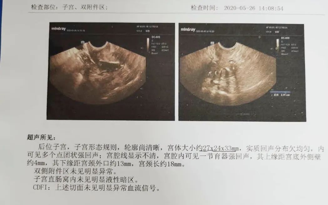 来自株洲石峰区的王阿婆今年已81岁高龄,上环43年,绝经31年,一年前,王阿婆发现下腹部坠痛,近一个月来,疼痛加剧,严重影响生活质量。B超检查提示:王阿婆的子宫已萎缩如节育环般大小,而放置她体内43年的节育环已全部嵌入子宫肌层,上缘距宫底外侧壁仅约4mm。