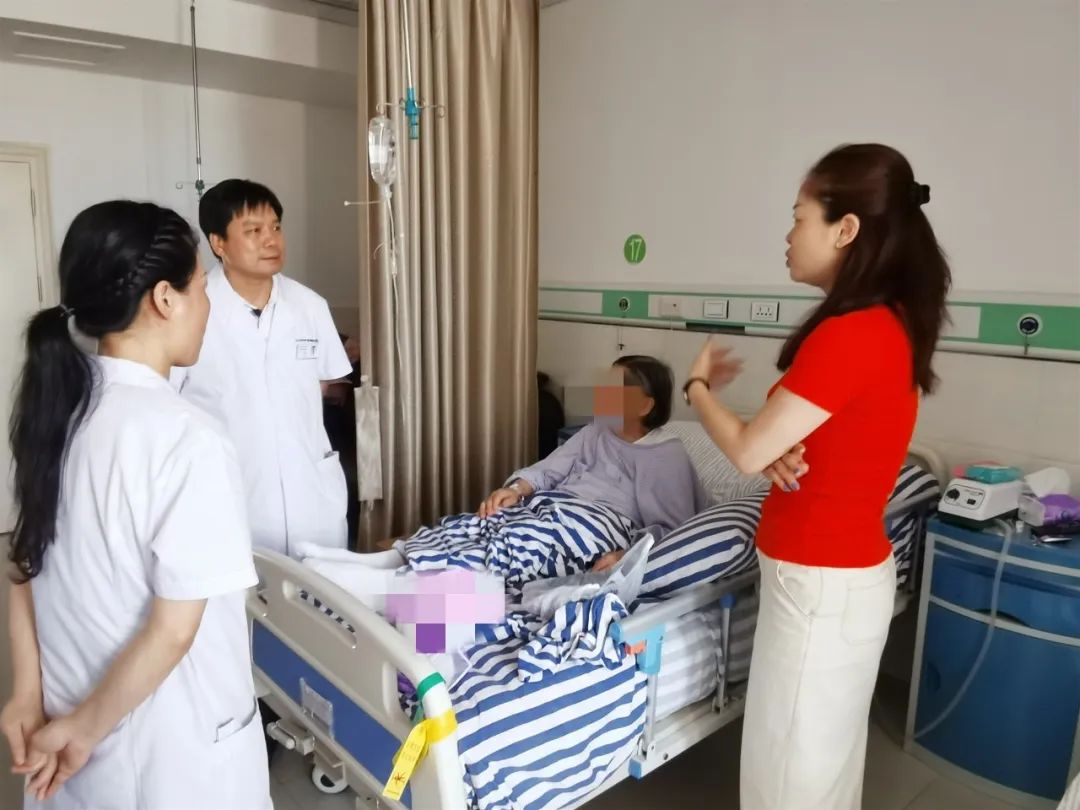 术后汤巧玲教授、刘莉主任查看王阿婆病情