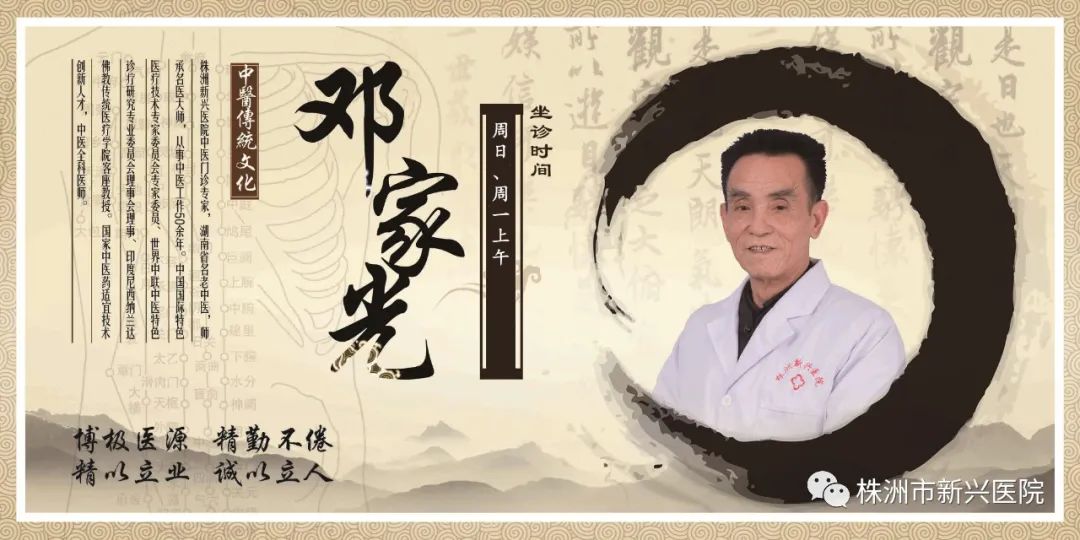 人生七十古来稀。而年逾70的还依旧忙碌在第一线,又有几人?株洲新兴医院特聘中医专家邓家光教授便是其一。虽已74岁高龄,但每周2次的专家门诊暑往寒来,风雨不改,凡经邓教授诊治的病人,都会成为他的“铁杆粉丝”,并愿意把全家人的健康都交付给他;邓家光教授诊病,“望闻问切”之间,亲切细心,尽显“仁心仁术”;对待病人他始终遵从八字宗旨:安全、有效、简便、廉验,擅长使用经方、食方、偏方。他临床用药灵活,思路新颖,选药精当,效专力宏,起效快速。常年带徒授业,育人重育德,桃李满天下。
