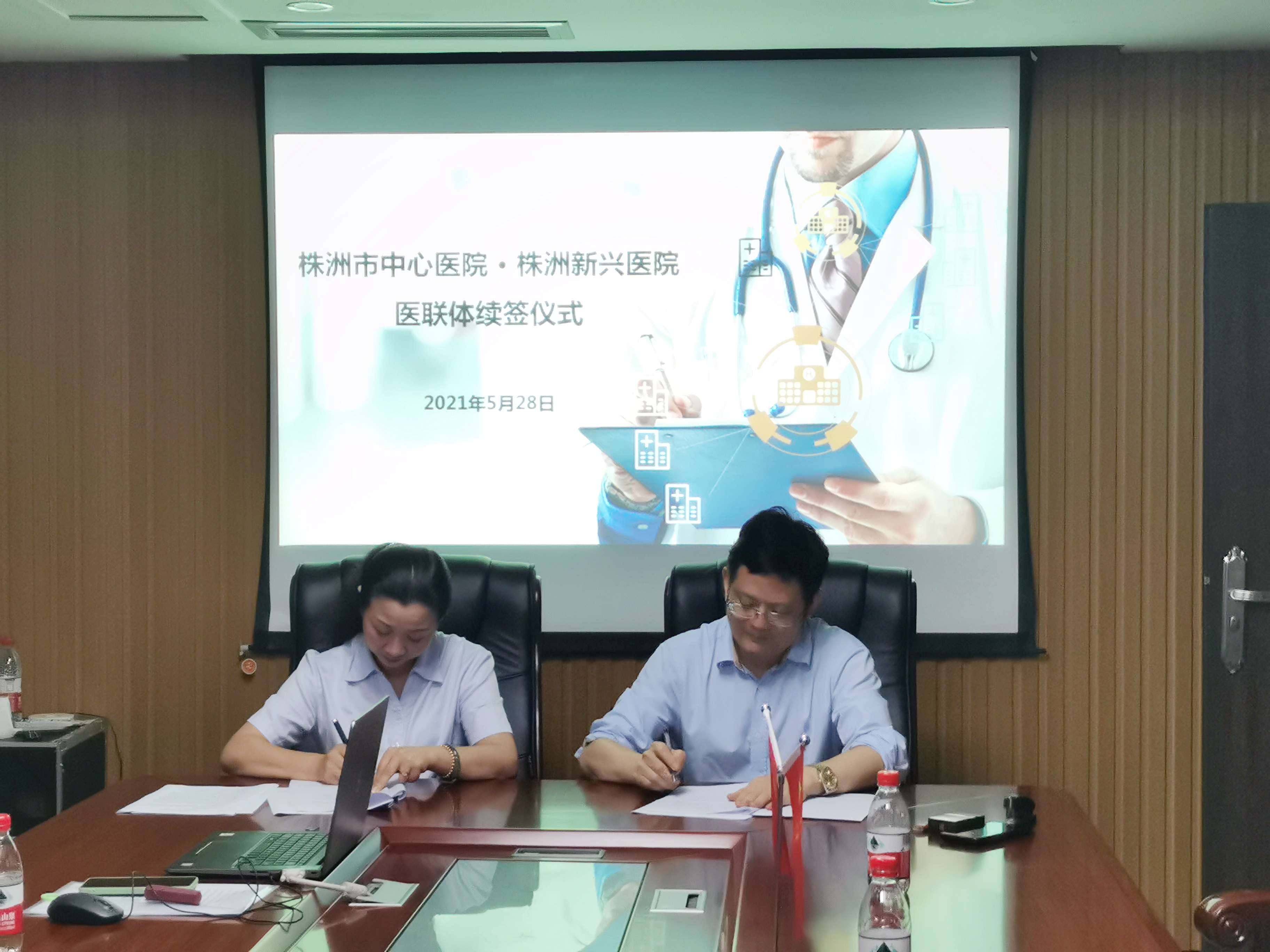 5月28日下午,株洲市中心医院与株洲新兴医院续签医联体仪式在我院正式举行。这是自2017年11月9日,株洲市中心医院与新兴医院签约医联体合作协议关系以来,第三次续签。